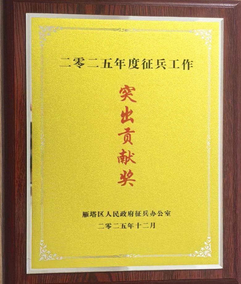 图二:我校荣获雁塔区 2025 年度征兵工作突出贡献奖奖牌