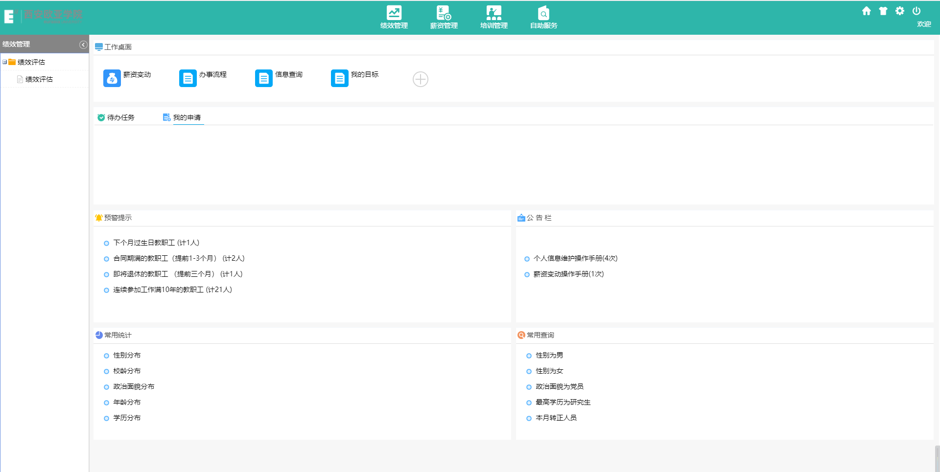 人事系统建设是我校数字化转型“十四五”规划的重点项目,我校人力资源管理系统从用户需求出发,在校内开展了广泛的系统需求调研,并在此基础上对系统建设框架修订与完善。通过系统搭建与多轮优化,建立起包括人力员工管理、员工自助、招聘管理、考勤计算、个人绩效、薪资查询、灵活报表等相关功能模块。