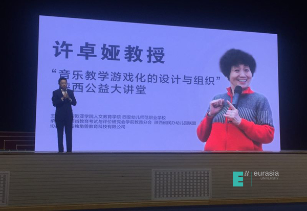 昨日的我校体育馆座无虚席,热闹非凡,一场别开生面的教师节活动在1800名幼教工作者的欢歌笑语中落幕。由我校人文教育学院和西安幼儿师范职业学校举办、陕西省教育考试与评价研究会学前教育分会主办、西安独角兽教育科技有限公司协办的“许卓娅教授音乐游戏化教学的设计与组织”在古城西安隆重开幕。