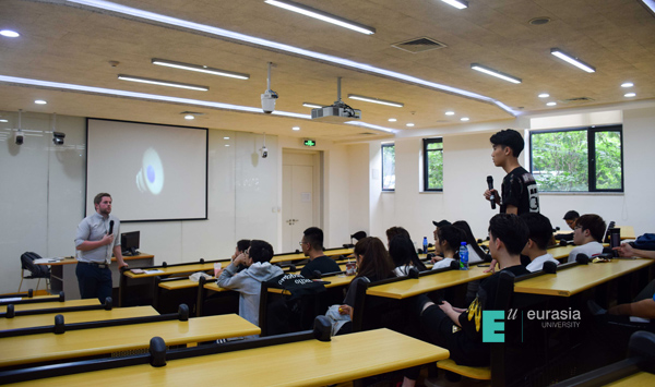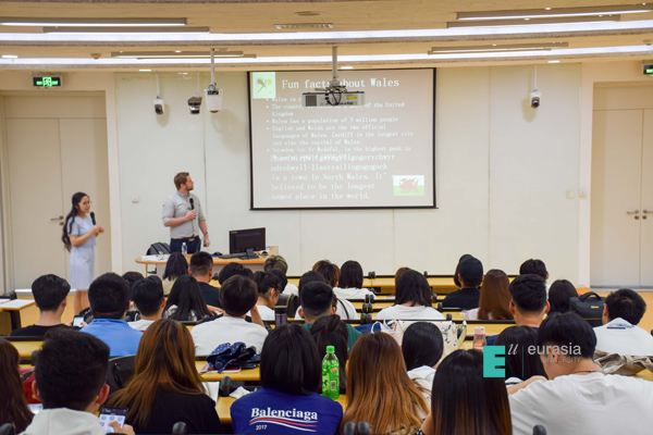 紧接着Owain Hedd Davies老师为同学们介绍,想要真正走进卡迪夫,来此学习就是最佳途径,卡迪夫城市大学是自由分布式校区,不同院系之间无有形分隔。该校授课过程多以小班形式进行。老师公布自主学习任务,学生自主完成任务,小组讨论陈述,老师引导评价是该校授课的主要形式。这与我校“以学生为中心”的教育理念具有相同基因。