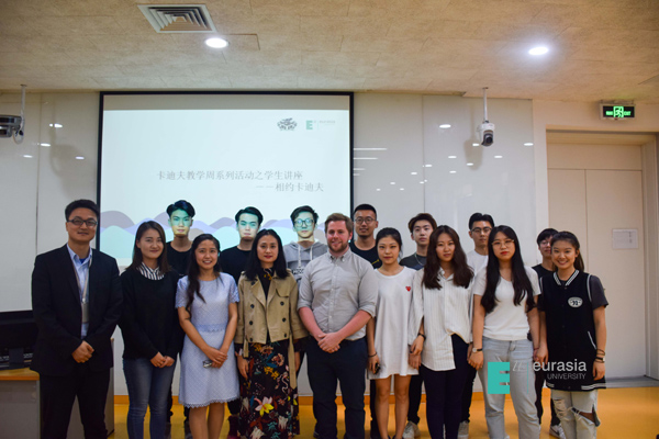 临近讲座结束之际,李冰洁老师代表中英国际项目组送给Owain Hedd Davies老师纪念礼物,并与大家合影留念。同时,冰洁老师也给出大家总结寄语,表示希望大家能够在卡迪夫教学周中有所收获,坚持学习,最终实现出国梦。并希望我们也可代表欧亚走向更远的未来,本次讲座圆满落幕卡迪夫教学周系列活动是物流贸易学院国际项目运行中的小小环节之一。随着学院国际化战略的不断推进,物流贸易学院在深度国际化的努力中,一直坚持“着眼”于学生的学习体验和学习效果,“着力”加强培养体系、课程体系的国际化。更加在持续稳定践行“培养国际化人才”的过程中,对分院整体的国际化进程形成潜移默化的影响。