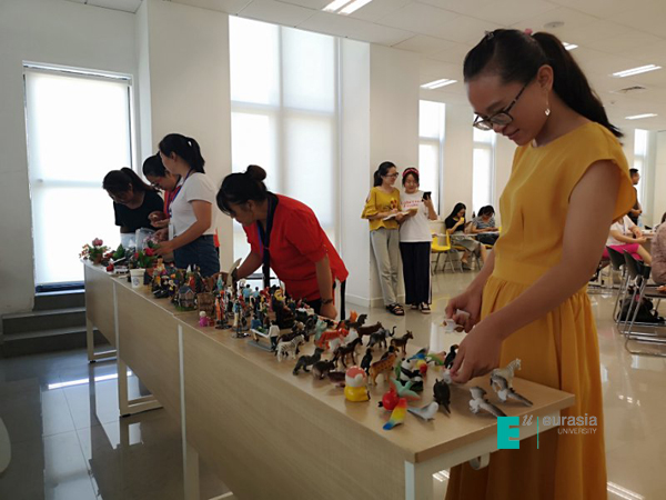 箱庭疗法是在治疗者(咨询师)的陪伴下,来访者从玩具架上自由挑选玩具,在盛有细沙的特制箱子里进行自我表现的一种心理疗法。培训第二天,培训项目组为学员们安排了个体箱庭体验和团体箱庭体验。尽管天气炎热,但学员们都很投入去体验。体验之后,寇老师为大家介绍了箱庭疗法的基本设置、治疗原理和操作方法,并结合大量的案例,让学员们了解了箱庭疗法在中小学学生心理辅导中的应用和疗效。让学员们懂得了在自由与受保护的空间中,倾听、欣赏、陪伴、见证每一位来访者。学员们也在体验中进行了自我觉察,有的学员发现了以前被自己忽视的东西,有的学员在迷茫中找到了力量,有的学员感受到了被接纳和理解的感动。正所谓“箱中小世界,心中大宇宙”。学员们纷纷表示,要在自己工作的学校、幼儿园真正发挥起箱庭的作用,帮助更多的学生,让他们受益。