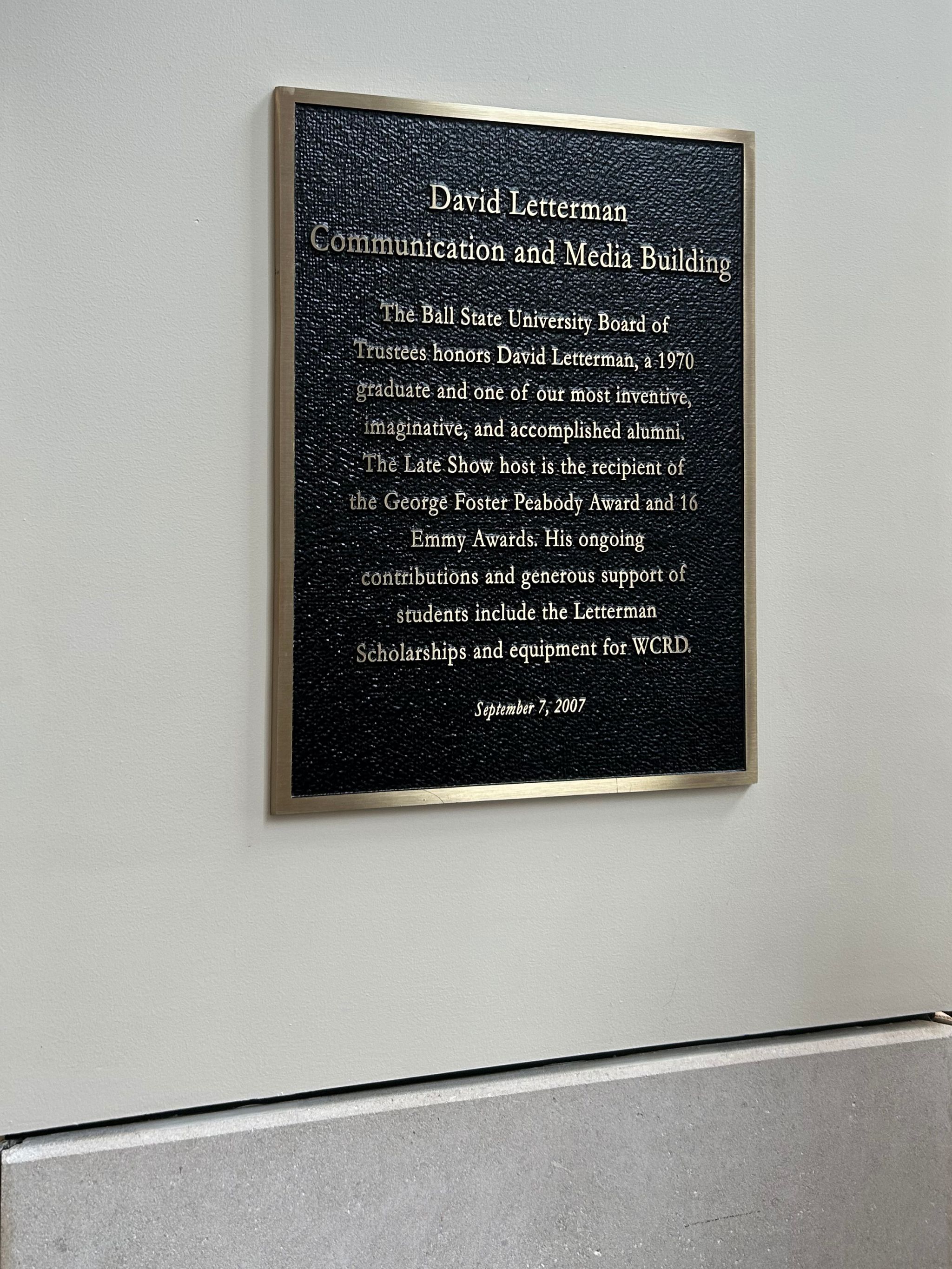 得益于这样的文化传统和环境,许多成功的校友也会持续地回馈母校。校园中随处可见出自校友捐赠的场所和建筑,而这些地方也都会在醒目处对这样的慷慨之举作说明并致以感谢。我们在鲍尔州立大学的参访行程就见到了多处来自校友的捐赠。鲍尔州立大学前身为印第安纳州立师范学院,后来更名为鲍尔教师学院就是为纪念鲍尔兄弟对当地高等教育事业的无私帮助和投入;而2007年落成的传媒大楼则来自著名校友大卫·莱特曼(David Letterman)的捐赠,这是对鲍尔州立大学精神和教学水平的最好褒奖了。回馈社会和母校,并铭记这样的回馈,在这些场所里学习和生活,想必是最润物无声的感恩教育。
