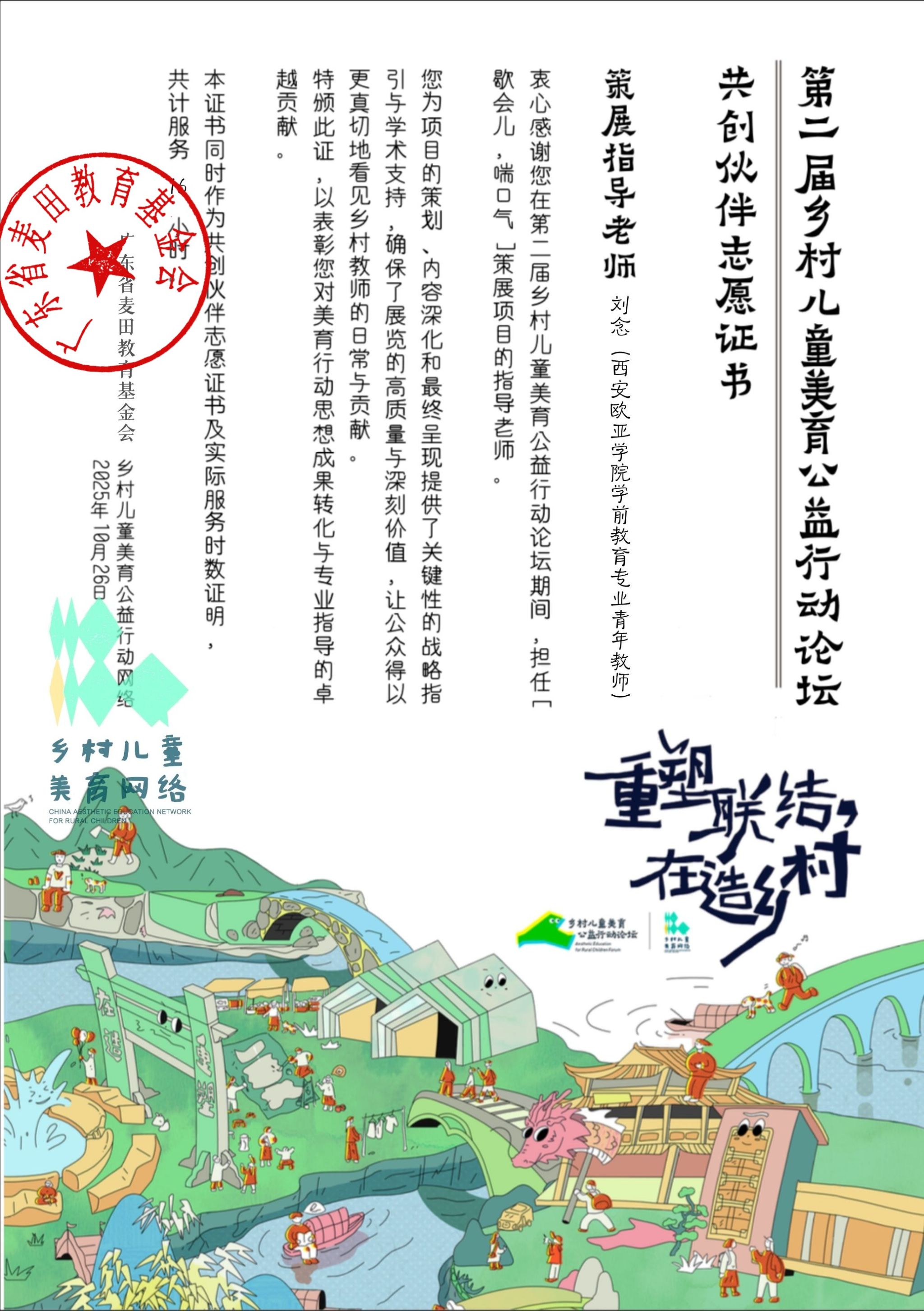 在社会服务层面,刘念策划并落地了“念想·黄土之上”美育展览。该项目源于她在陕北老家将一座荒废十余年、杂草丛生的旧窑洞,亲手改造为乡土美育场地的实践。这一行动在暑期通过朋友圈发布后,迅速得到了学生们的积极响应,师生们共同完成了这项艰巨的清理与布展工作,令她深受感动。