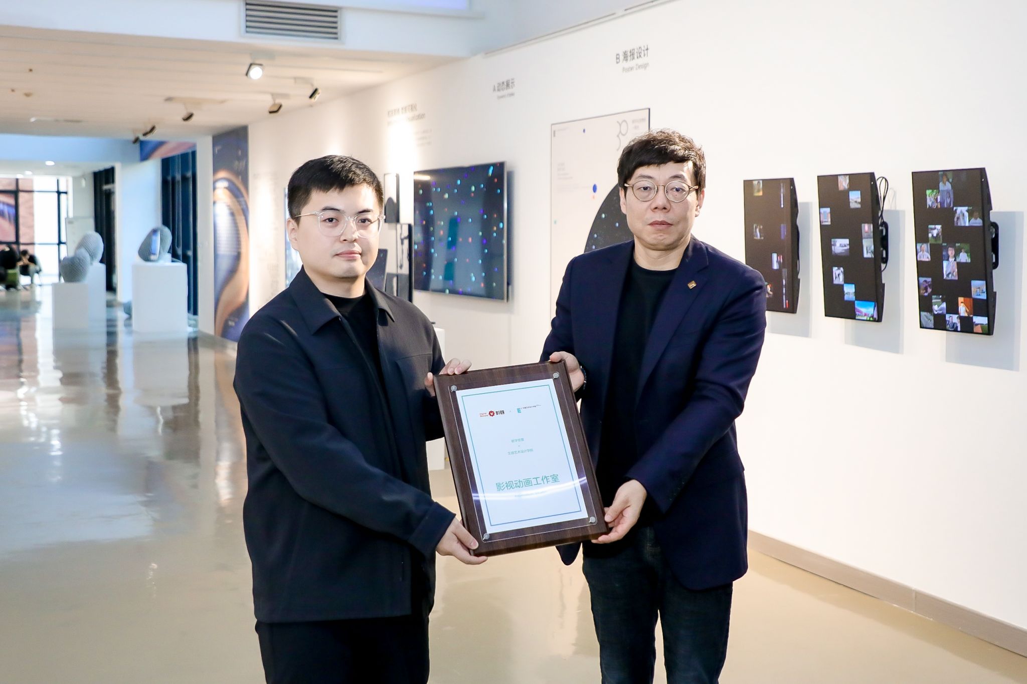 bevictor伟德国际1946官网李正副校长与石超群经理为“影视动画工作室”共同授牌