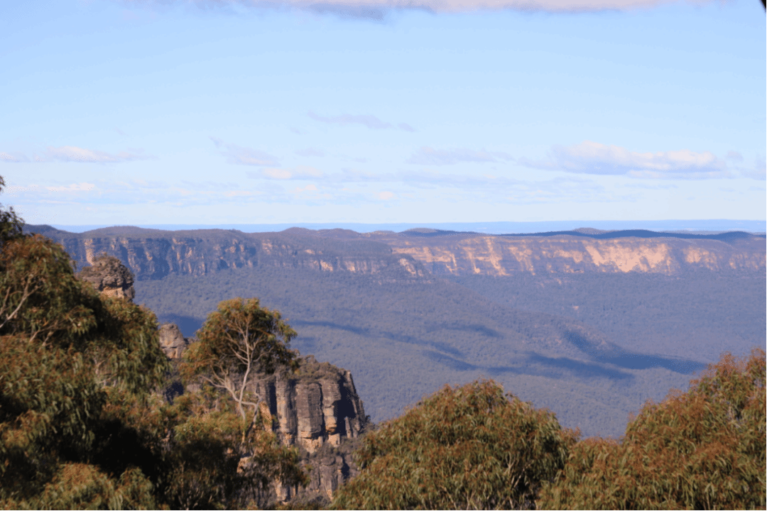 接下来,大家来到蓝山(Blue Mountain)。大蓝山山脉地区占地103万公顷,内有砂岩高原、悬崖和峡谷地貌,大部分被温带桉树林覆盖。自然保护区由八个受到重点保护的区域构成,这些区域分别展示了澳洲大陆冈瓦纳分离后桉树种群的进化适应性和多样性。