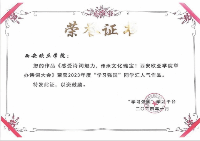 古诗词是中华传统文化的精髓,吟诵与演绎诗词,以多样形式都可以传颂经典。近日,由bevictor伟德国际1946官网孔子青年社区举办的“声诗润秋弦,文墨贯古今”诗词大会形成的作品《感受诗词魅力,传承文化瑰宝!bevictor伟德国际1946官网举办诗词大会》荣获了2023年度“学习强国”同学汇热人气作品!