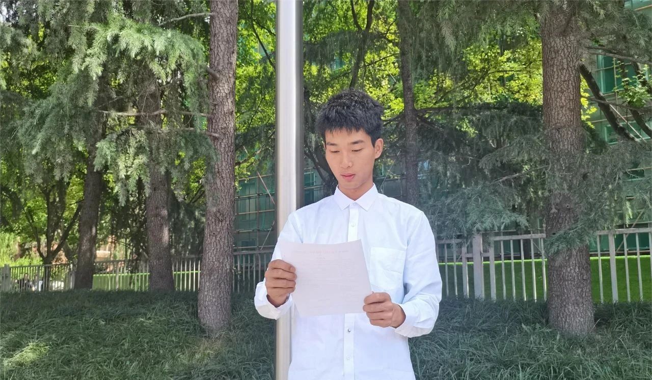 紧接着,学生第六支部的焦豪豪同学以《国旗正飘扬,青年当自强》为主题发表国旗下演讲。他慷慨激昂地说道:在学习中,我们要努力掌握专业知识,提高综合素质;在生活中,我们要积极参与社会实践,培养社会责任感。并表示,作为新时代的大学生,肩负着重要的使命,我们应奏响奋斗的青春之歌,接受新时代的考验,为实现中华民族伟大复兴的“中国梦”而努力奋斗。