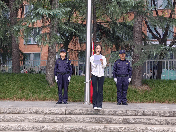 在激昂的国歌声中,五星红旗冉冉升起,全体师生向飘扬的五星红旗行注目礼。此刻,他们心中充满了对祖国的崇敬与自豪。