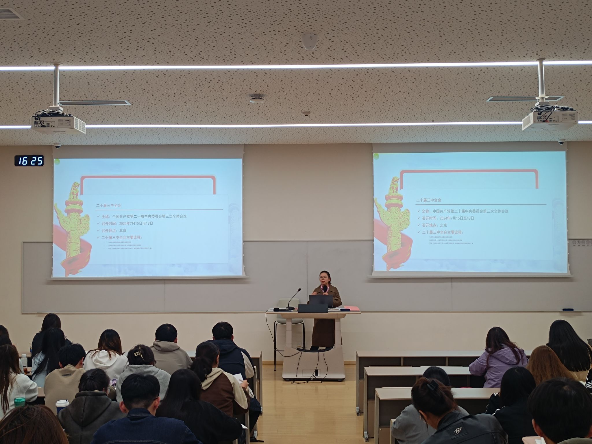 为深入学习贯彻党的二十届三中全会精神,推进党纪学习教育常态化长效化,第二青年社区分党委于近期在北E-206组织开展入党积极分子培训班专题党课。第二青年社区分党委书记白利宁同志以生动的党课形式引领积极分子们深入解读党的二十届三中全会会议精神,将党的创新理论融入青年血脉,深化党纪学习教育成果,激发新时代青春力量。