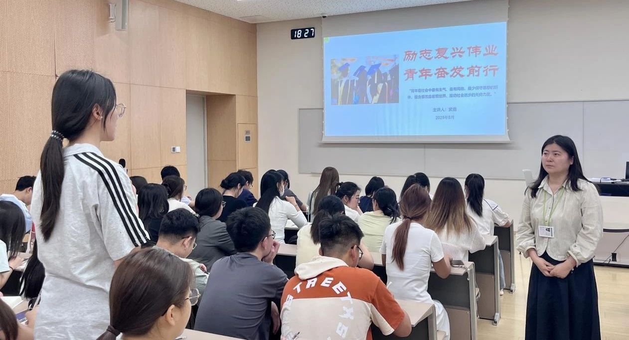青春是奋进的号角,使命是时代的召唤。为进一步加强对入党积极分子的思想政治教育,第三青年社区分党委于2025年5月15日在北E-206组织开展了“励志复兴伟业,青年奋发前行”专题党课。本次党课由分党委青年委员武倩主讲,近140名入党积极分子参与。