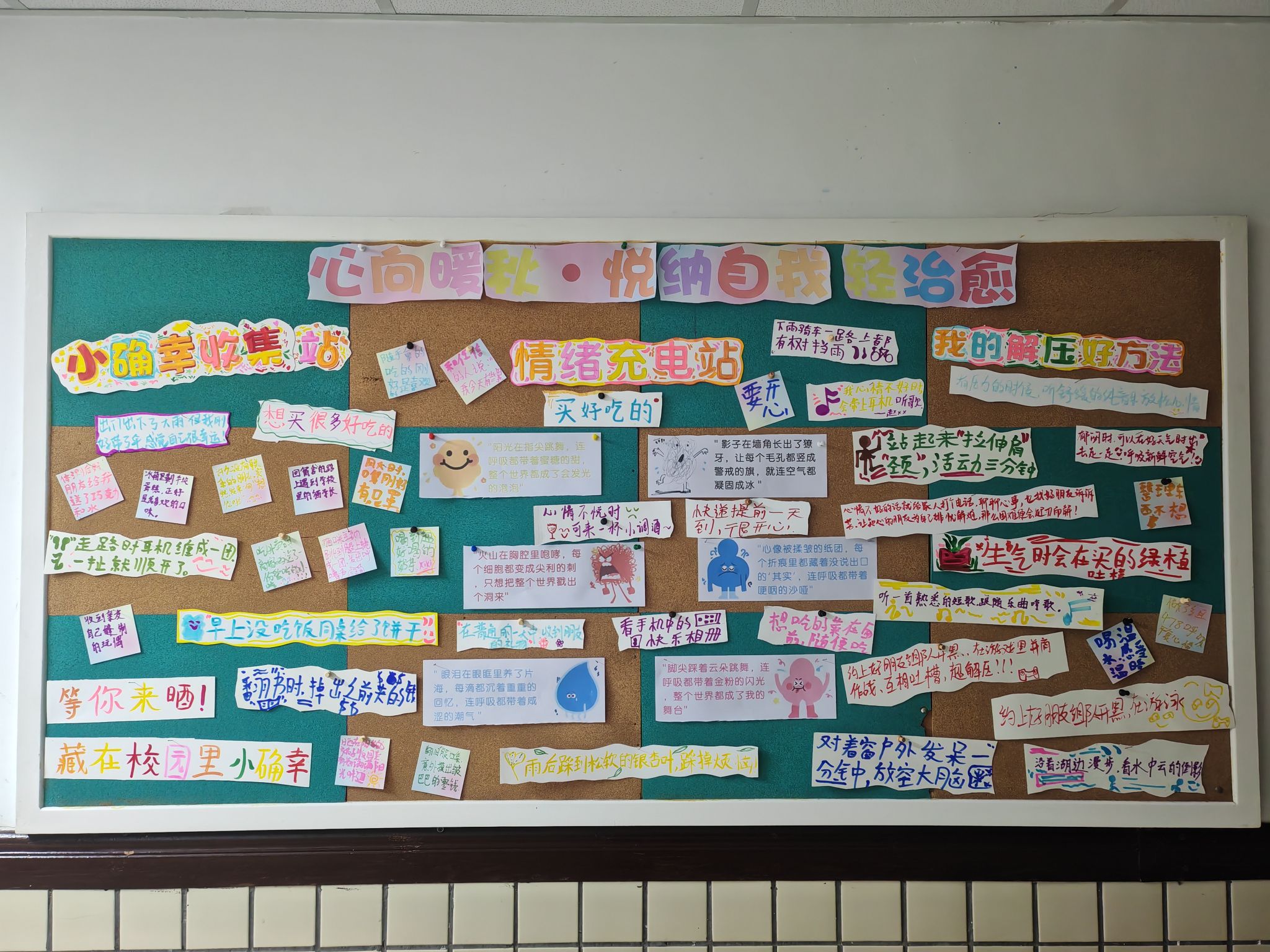 另一方面,心理角引导学生接纳自我情绪,鼓励学生通过情绪烦恼箱等形式关心他人,充分发挥学生朋辈作用,引导学生更好的应对心理“感冒”。同学们会将自己的心理状态写成标签,粘贴到心理角,与其他同学进行互动,减轻个人压力。