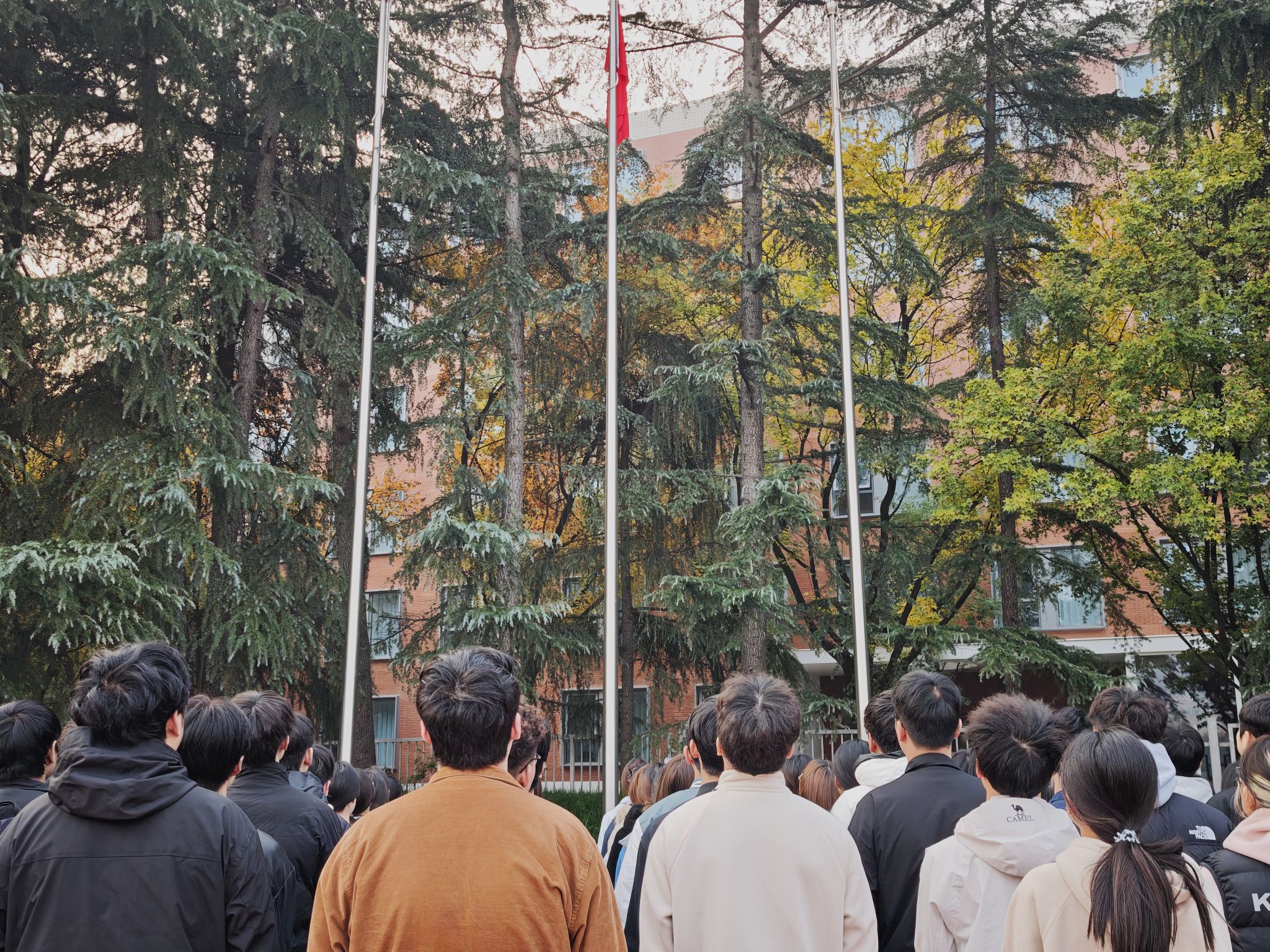 当晨光渐渐洒落,国歌的激昂旋律在操场响起,全体师生肃立注目,五星红旗迎着微风,于晨光中缓缓舒展、冉冉升起。那抹鲜艳的中国红,映照着一张张坚定的面庞,将家国情怀与青春信念,牢牢镌刻在每个人心中。