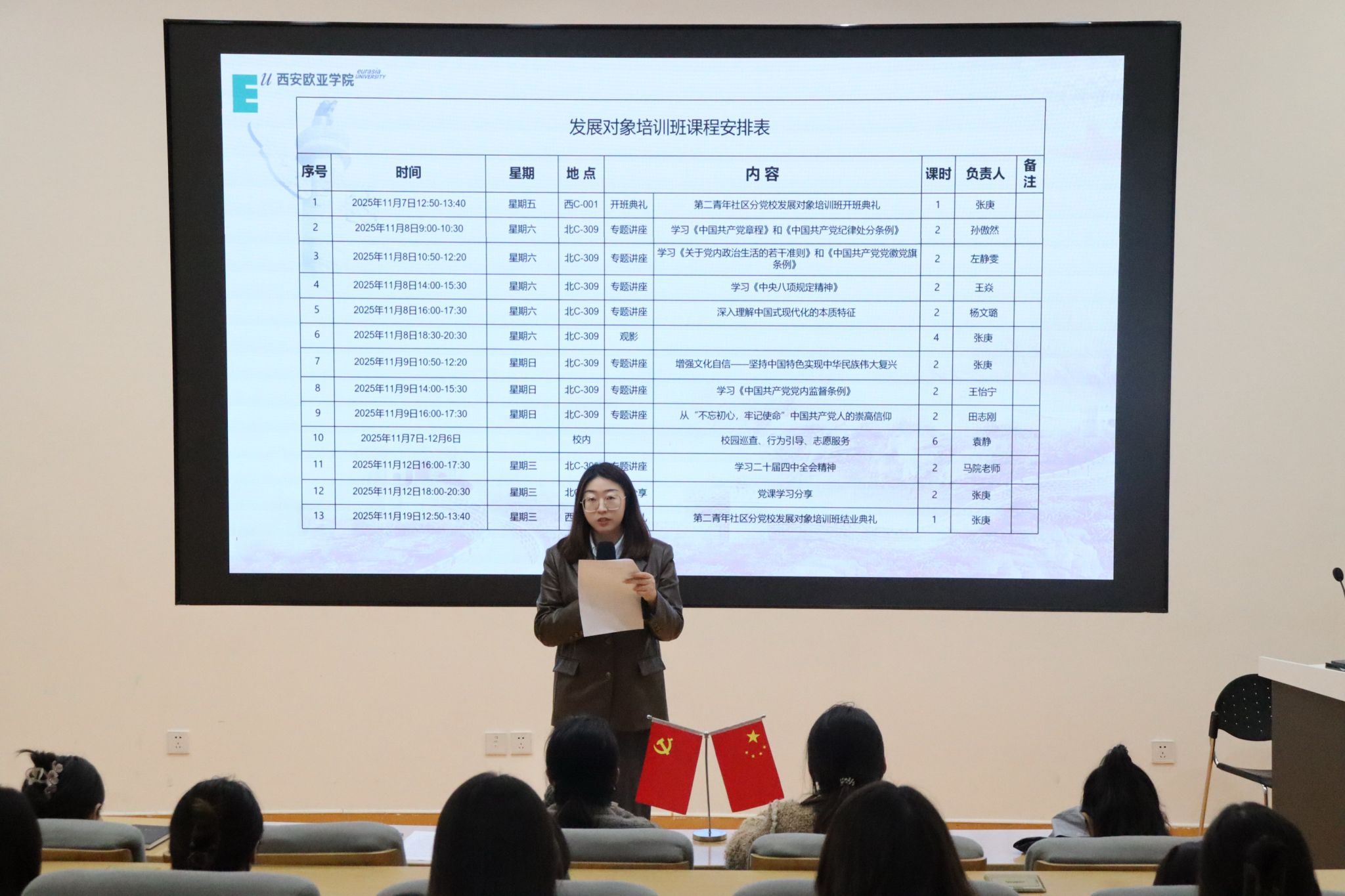 本次发展对象培训班开班典礼为在增强学生思想建设,树立正确入党动机,牢记党的初心和使命,努力学习,艰苦奋斗,主动服务于社会,积极参加实践活动,担当时代大任。今后,第二青年社区分党委将切实扛起党员发展工作的政治责任,以此次培训为起点,持续深化对发展对象的跟踪培养,共同推动党员工作高质量发展。