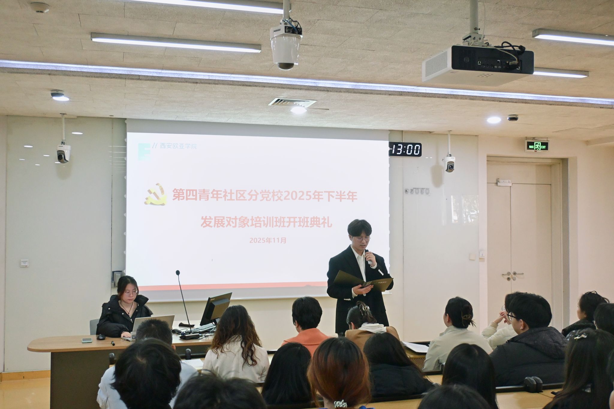 2025年11月11日,第四青年社区分党委在南D-001教室举行2025年下半年发展对象培训班开班典礼,分党委副书记黎舒婷、各学生党支部书记以及62名发展对象出席典礼。