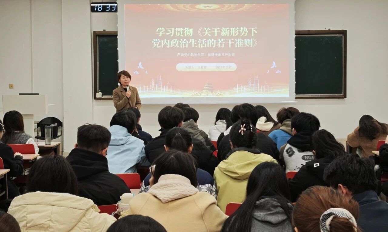 党委副书记张爱荣老师则围绕《关于党内政治生活的若干准则》和《中国共产党纪律处分条例》等重要党内法规进行了细致解读。张老师阐述了严肃党内政治生活的极端重要性,逐条讲解了《准则》的基本内容和要求;同时,结合实例剖析,对《条例》的主要条款、纪律红线和处理情形进行了说明,教育引导学员们要牢固树立规矩意识和纪律观念,知敬畏、存戒惧、守底线。
