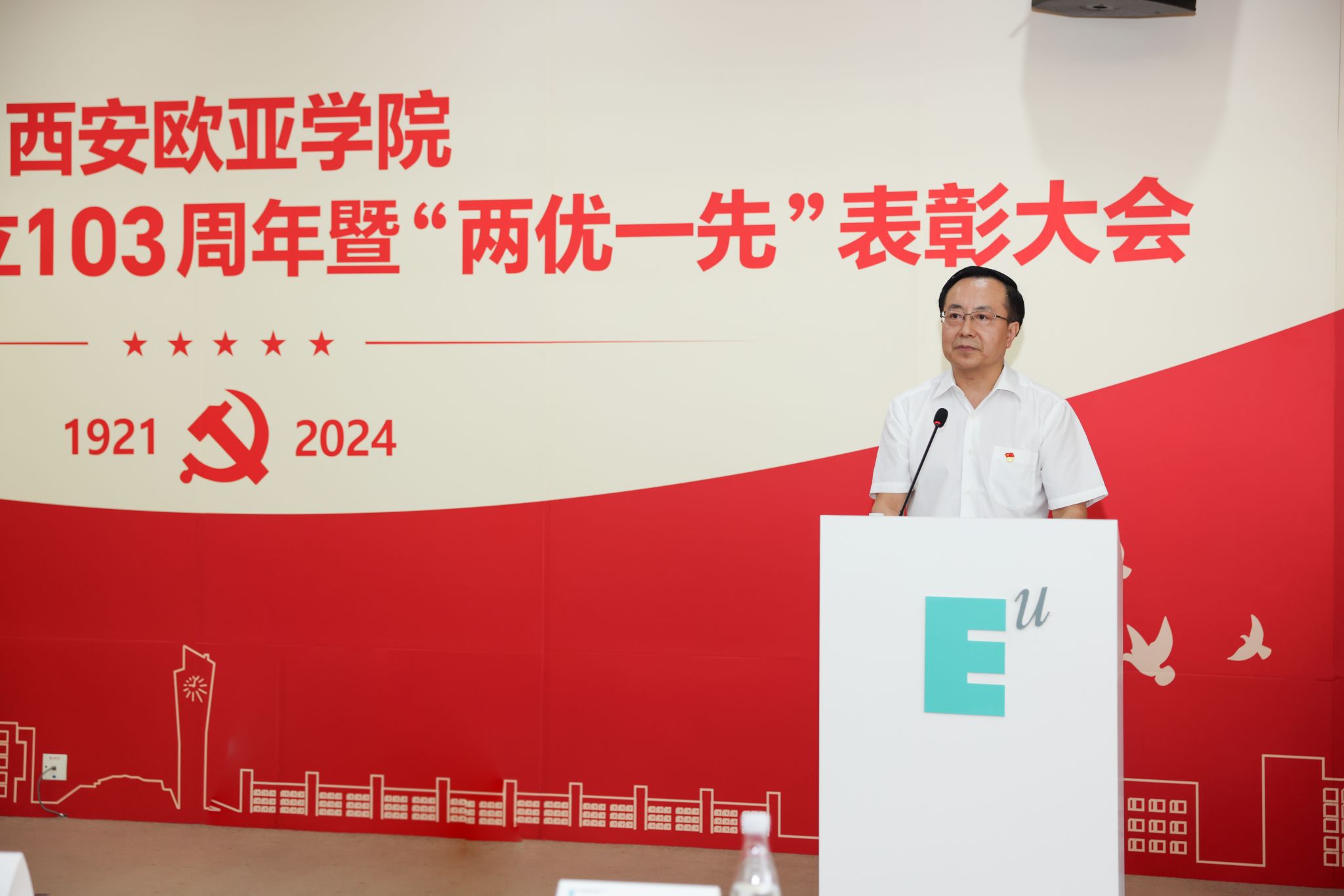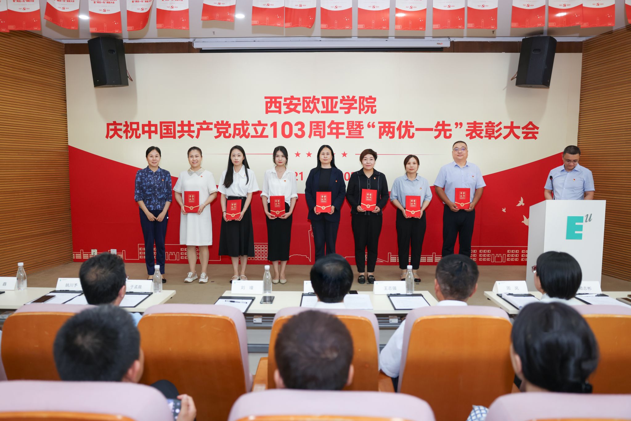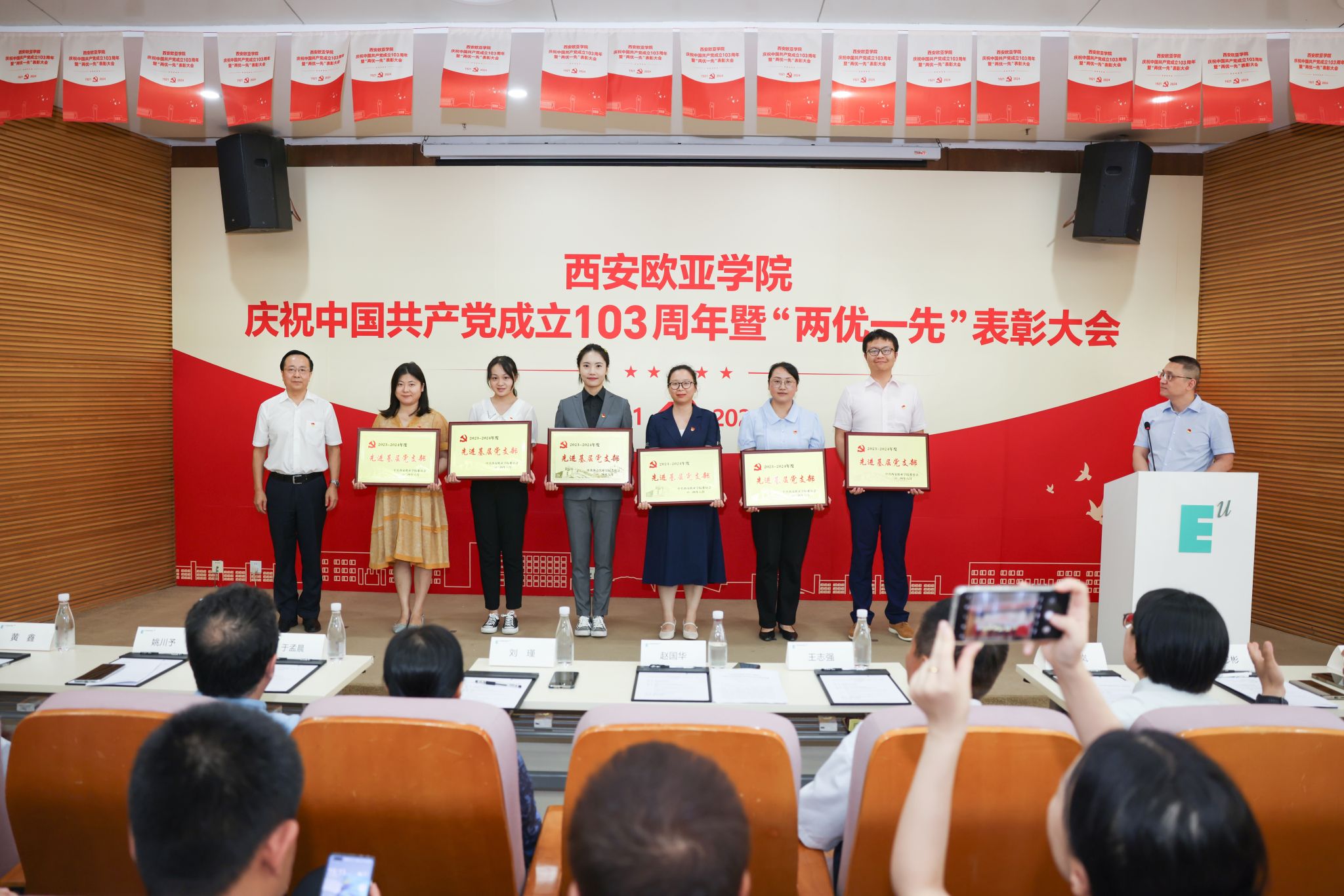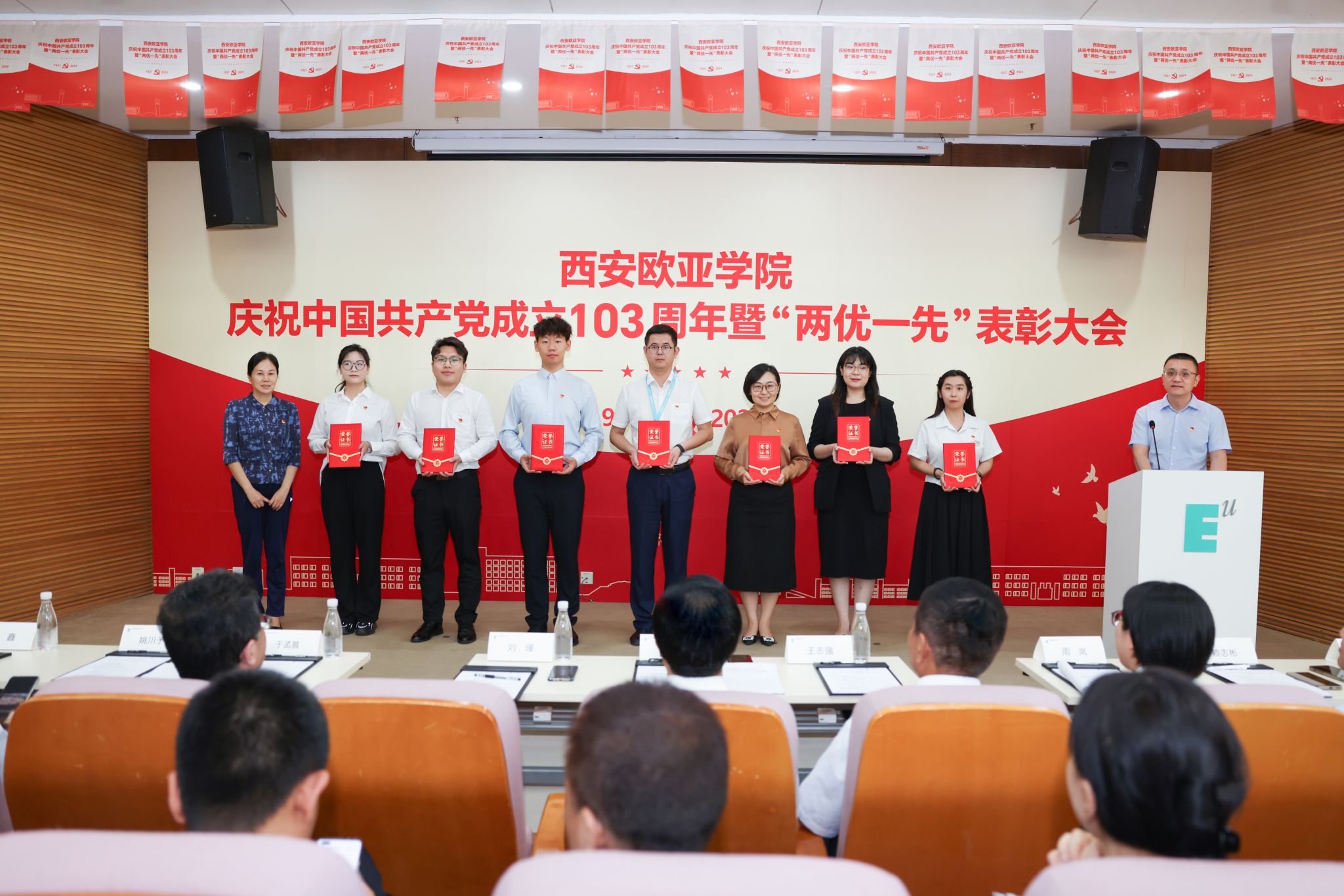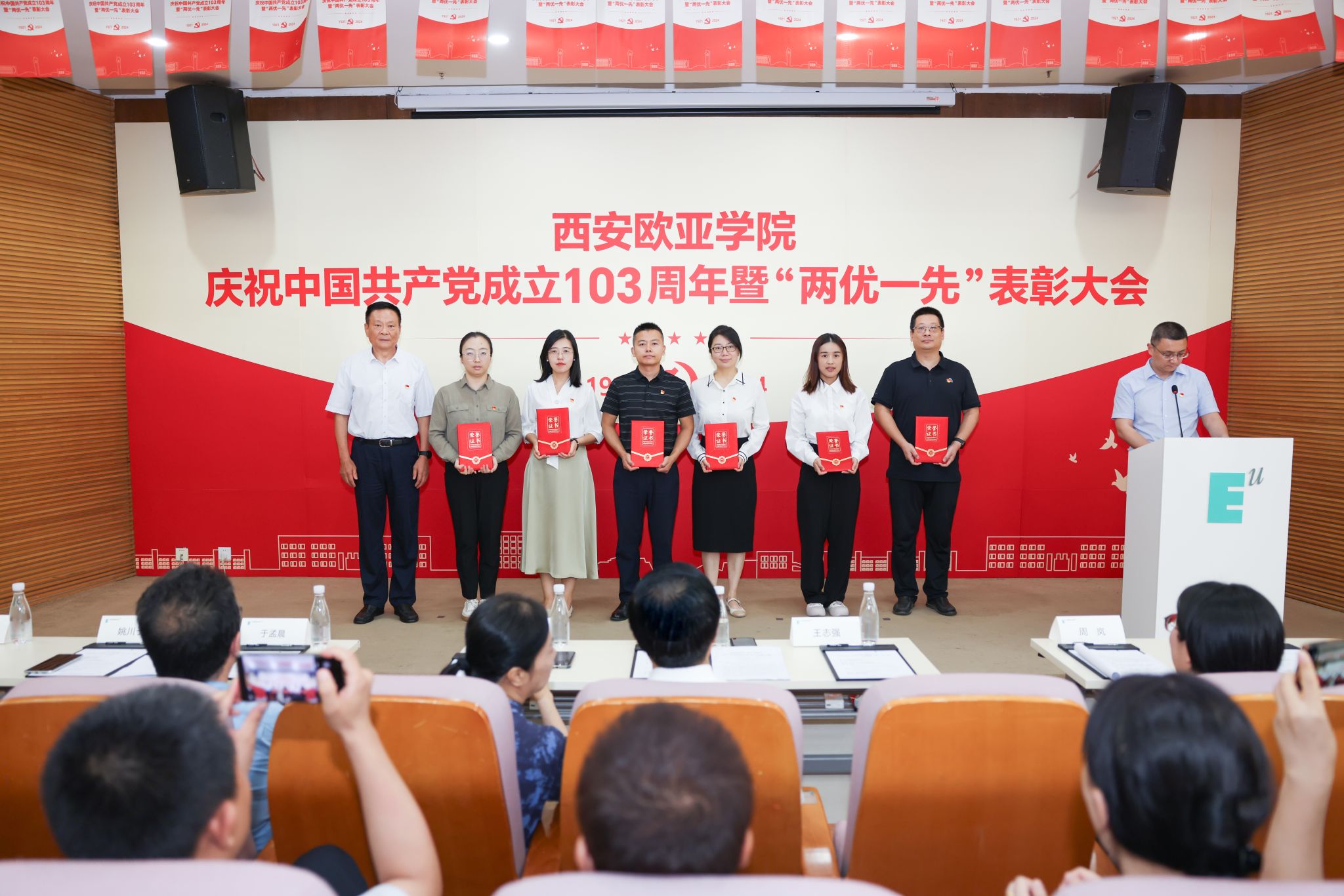 6月28日,学校庆祝中国共产党成立103周年暨“两优一先”表彰大会在图书馆学术报告厅举行。大会由党委副书记张军宏主持,学校党政领导、党委委员、纪委委员及师生党员代表近200人参加。