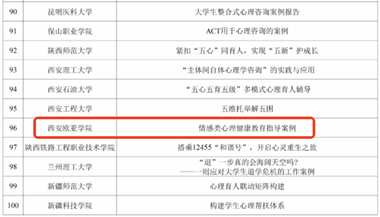 本次我校案例的入选,是对学院长期以来高度重视学生心理健康教育工作成果的认可。建校以来,我校高度重视学生心理健康教育工作,将其作为人才培养的重要环节,纳入学校整体发展规划。学校在2003年成立了学生心理咨询中心,中心以积极心理学为指导,注重挖掘学生个体优势,为师生赋能。构建了教育教学、实践活动、咨询服务、预防干预、平台保障“五位一体”的心理育人工作体系,组建了专业的心理咨询师队伍,开设了心理健康教育课程,开展了形式多样的心理健康教育活动,设立了二级心理辅导站等,为学生全面成长筑牢坚实的心理根基。