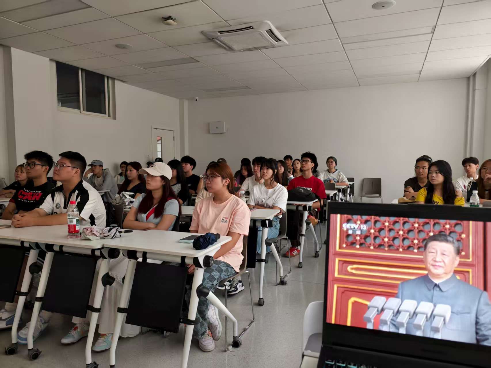 9月3日9:00,学校组织全体在校师生通过电视、广播、网络等方式,收听收看纪念中国人民抗日战争暨世界反法西斯战争胜利80周年大会实况转播,认真学习习近平总书记关于中国人民抗日战争和世界反法西斯战争的重要论述,以一堂庄严与震撼的“开学第一课”共同纪念这个光辉的日子。
