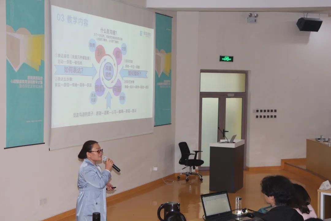 李海荣老师和张鑫老师选择了人际沟通的主题,通过五个模块的内容,什么是沟通,沟通的四个因素,如何表达,如何倾听促进沟通的六个因子带领学生层层深入。通过运用心理学的一些知识让学生能够亲自体验亲身感受,了解沟通在人际交往中的重要性,与台下学生的互动也十分和谐。