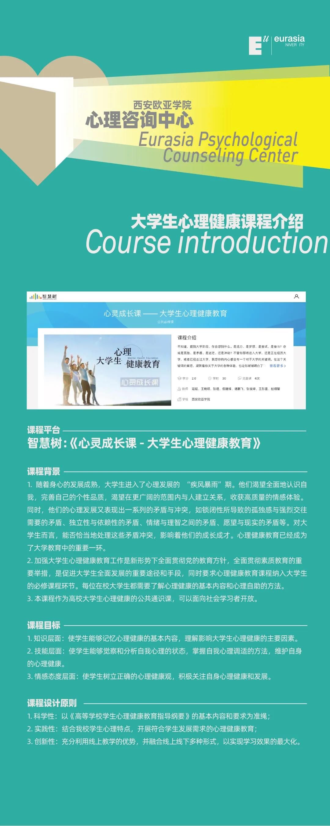 我们希望通过该课程的学习,可以帮助大学生了解心理健康的影响因素和心理发展变化的规律,更加全面的认识自己,完善自己的个性品质,掌握心理调适的基本技能,学会心理自助。目前,该课程已经在智慧树平台上线,并面向社会学习者开放。