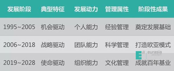 在欧亚发展的25年里,从机会驱动到战略驱动再到使命驱动,从经验管理到科学管理再到文化管理,从依靠个人能力到发挥团队能力再到打造组织能力,从赢得生存基础到建构自主意识再到寻求内心从容,每个阶段我们都秉持初心,坚定前行。