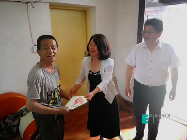 (图三)校长助理张乐芳为学生家长送上慰问金