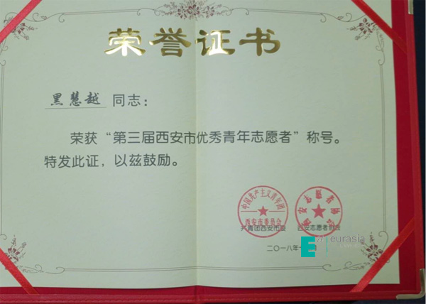 为了进一步弘扬“奉献、友爱、互助、进步”的志愿者精神,不断的推动雷锋精神人人可学,实现志愿服务处处可为。12月24日,第三届西安市优秀志愿者表彰会在华山国际酒店召开。我校青年志愿者协会荣获"第三届西安市青年志愿者优秀组织奖"。指导老师黑慧越获得优秀志愿者称号。