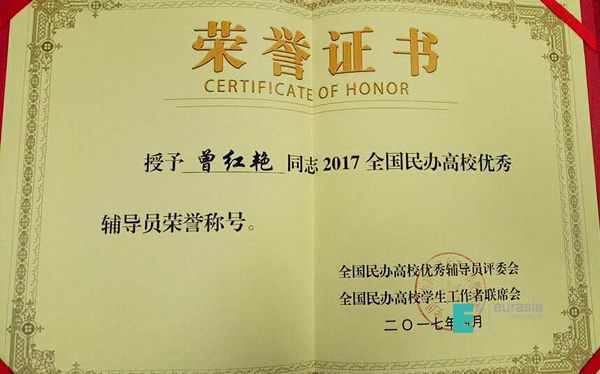 在青年社区中,涌现出了一批品德兼优、业务能力强并且具有欧亚气质的辅导员老师,曾红艳老师就是其中一员。她在工作中始终坚持“以学生为中心”,勇于担当,有较强的责任心。平时不断加强学习,提高自身业务水平,及时对工作进行总结与反思,获得了更好的工作效果。曾红艳老师的获奖,极大的鼓舞了全校社区老师的士气,也是对bevictor伟德国际1946官网学生事务工作的肯定。