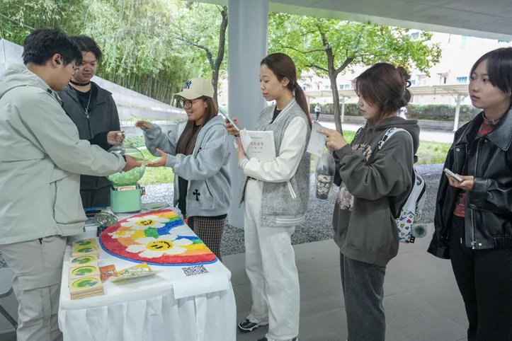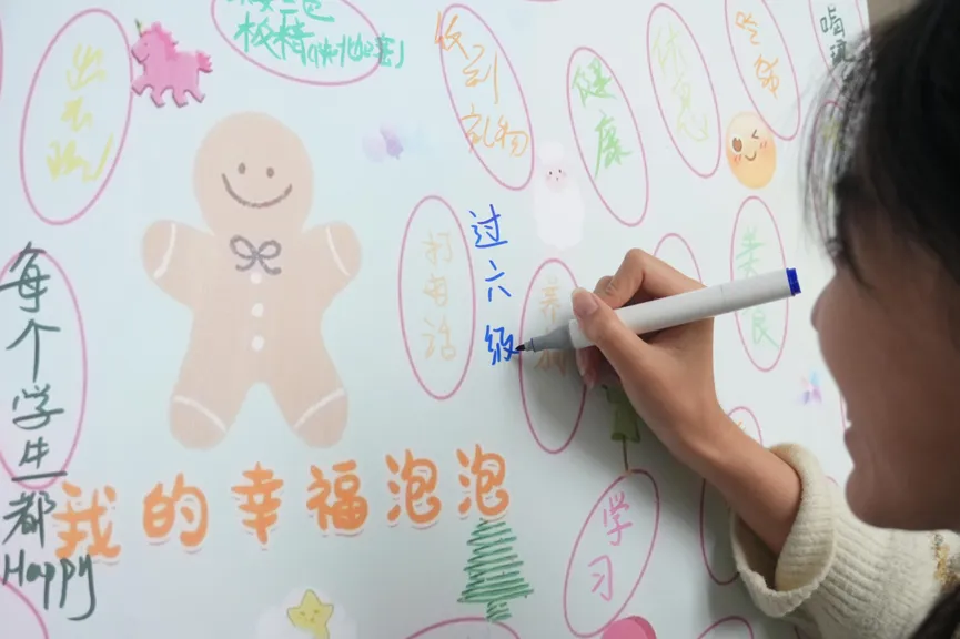 活动伊始,参与者在打卡墙选取幸福泡泡,分享“拿奖”“吃甜品”“四六级一遍过”等幸福瞬间,传递生活点滴喜悦;“幸福之树”环节,同学们用油画棒与丙烯颜料在卡纸作画,分别创作根系、树干与枝叶,最终贴入展板;“幸福之书”环节,大家在书页空白处写下幸福感悟。活动尾声,参与者领取微笑杯垫作为回馈,既收获了创作快乐,也在校园传递了温暖。