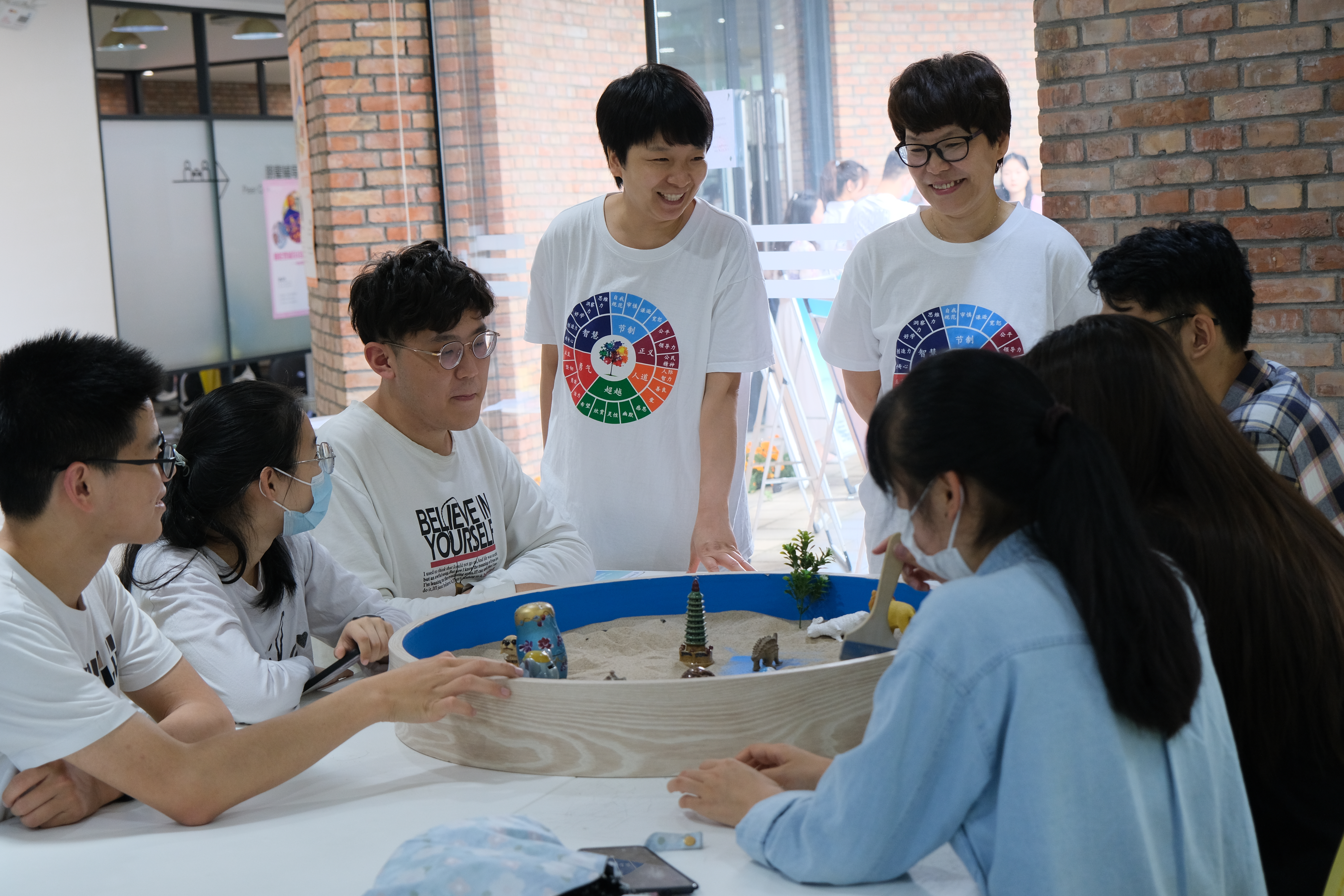 “圆文化沙盘体验”活动以“健康‘乐’沙游,激活‘心’动力”为主题,六张圆沙盘顺势摆放,各种沙具有序呈现,从不同的角度传递着各自的讯息。同学们在带领者的引导下热烈讨论,认真挑选、摆放沙具,各个沙盘内容丰富、妙趣横生。同学们也在这样的互动中放松自己、了解自我、展望希望的人生。