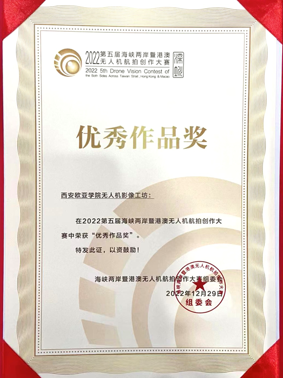 2022年12月29日,2022第五届海峡两岸暨港澳无人机航拍创作大赛在深圳佳兆业万豪酒店举行颁奖典礼,bevictor伟德国际1946官网无人机影像工坊《绽放的中国》荣获2022第五届海峡两岸暨港澳无人机航拍创作大赛优秀作品奖。
