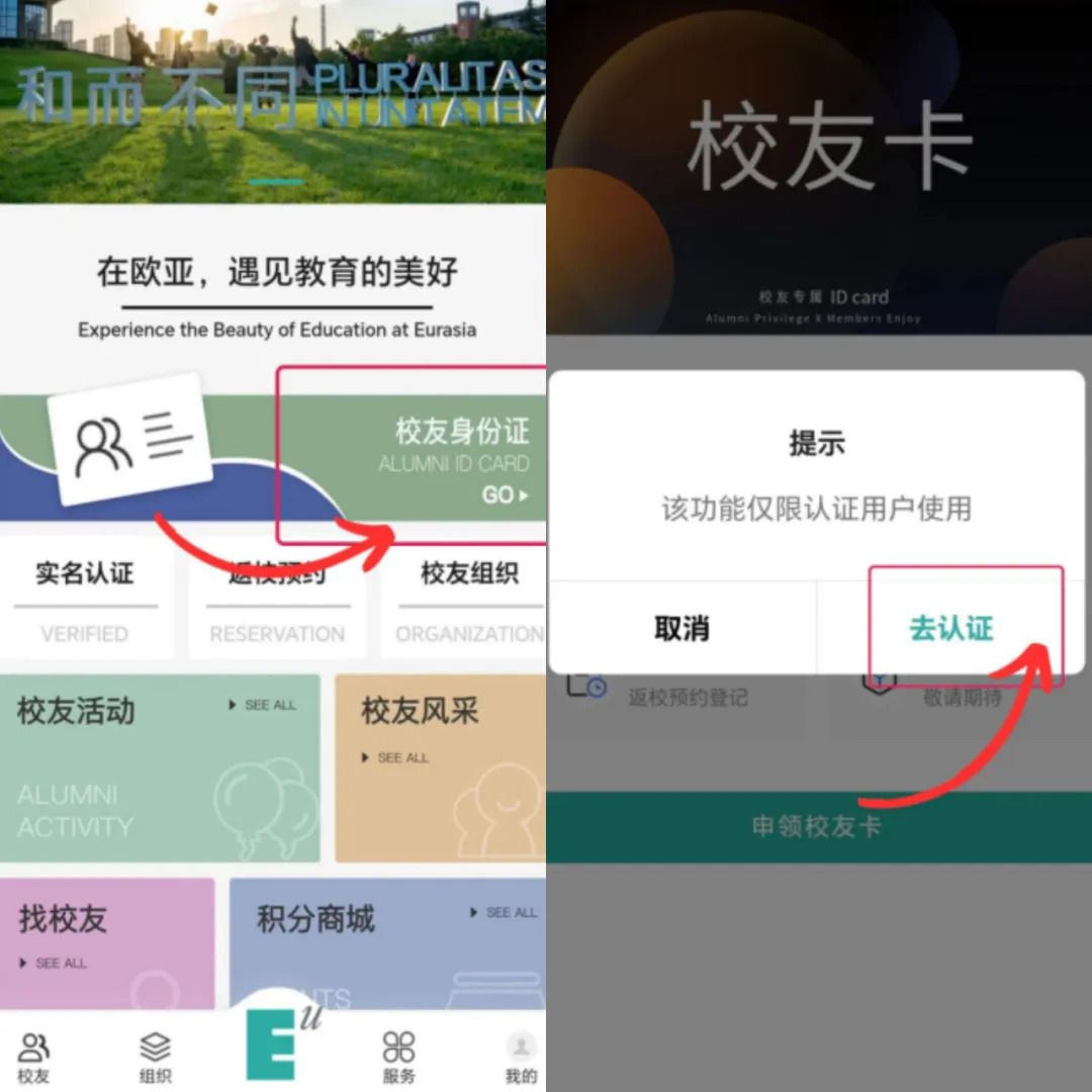7.认证审核通过后,点击校友服务小程序首页【校友身份证】,进入校友卡申领。