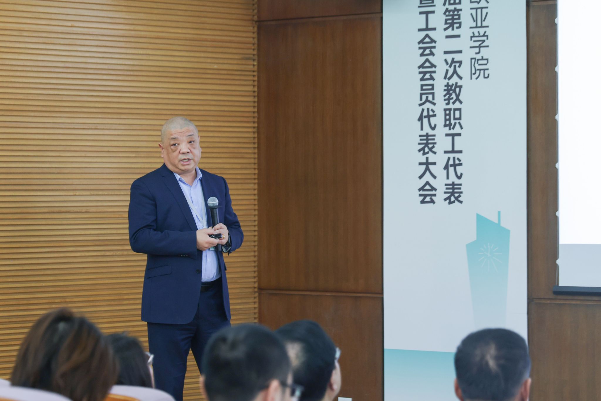 工会副主席樊晨作了《工会2024年工作报告和 2025 年工作计划》《第四届第一次 “双代会”提案处理情况报告》和《第四届第二次 “双代会” 提案征集情况报告》,详细讲述了工会在民主管理、师德师风建设、教职工服务、产教融合、促进教职工职业发展等方面所做出的努力及取得的成绩,明确了 2025 年的工作重点与方向;将提案的处理进度、落实情况以及新一轮提案的征集情况一一向代表们进行说明,充分展现了学校对教职工意见的重视与积极回应。