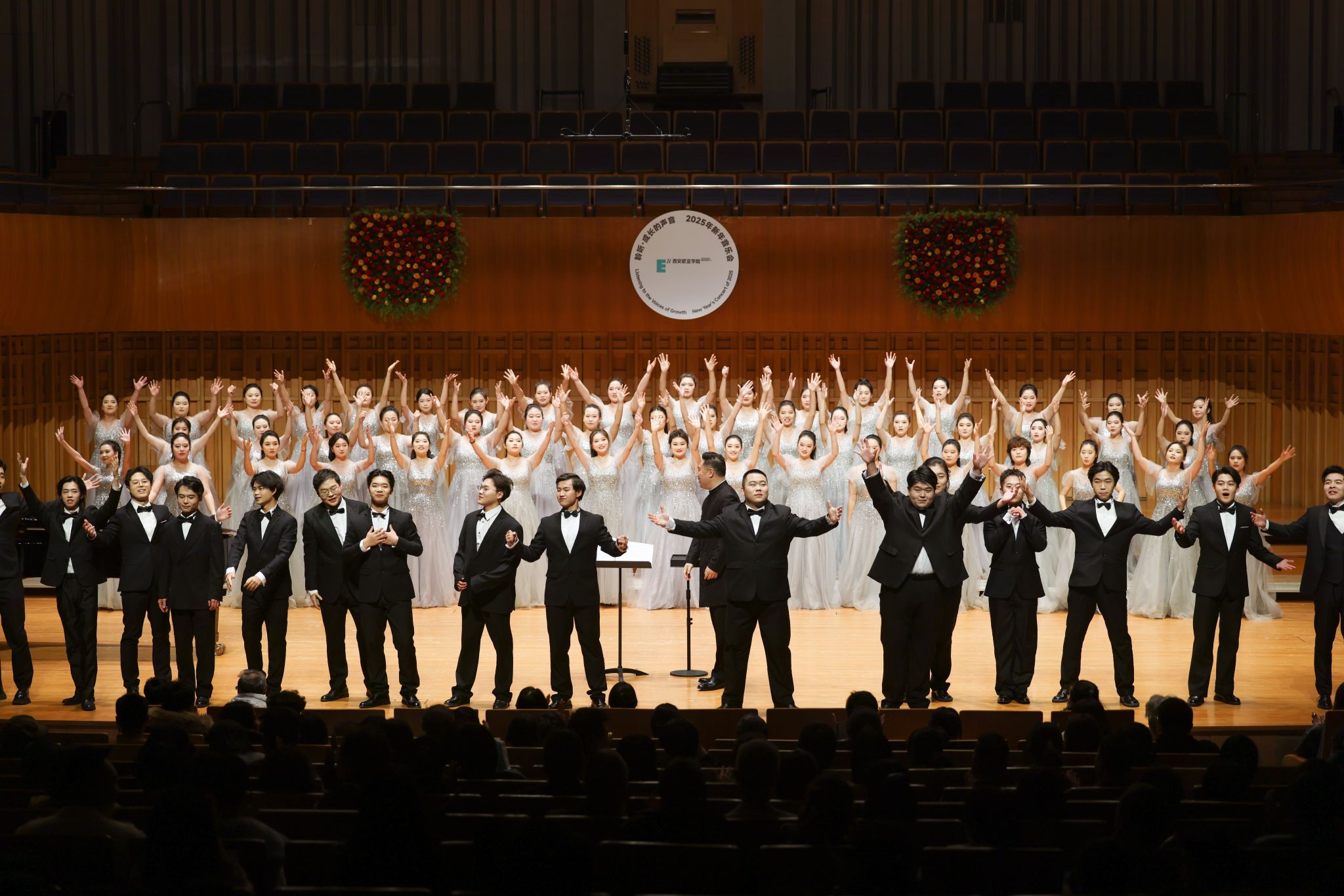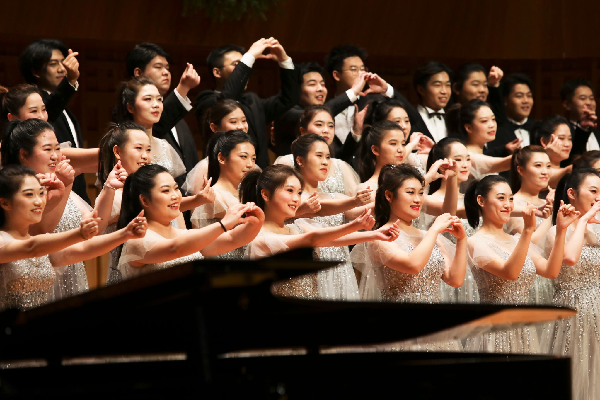 出发之前,一堂诙谐幽默的《声部介绍歌》“小课堂”提前上线。当诡异的BGM响起,舞台上各个声部便开始了“明争暗斗”的戏码,女高音、女中音、男高音、男低音的成员们相互“较劲”,生动有趣的对话,让舞台下“爱凑热闹”的观众们欢笑不停,还学到了不少音乐知识。