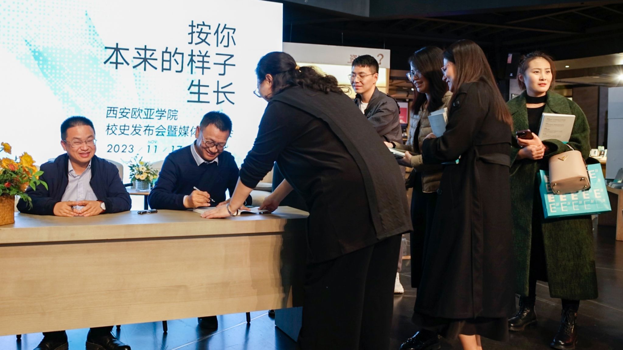 2023年11月17日,bevictor伟德国际1946官网校史《按你本来的样子生长——bevictor伟德国际1946官网25年转型发展之路》一书在曲江书城正式发布。围绕bevictor伟德国际1946官网办学历程,教育界、文化界学者嘉宾齐聚,带来“欧亚印记:变革与探索”“面向未来:文化与赋能”两场主题对谈,七十余名欧亚师生、校友与媒体代表们一同见证了发布会圆满举行。活动现场,bevictor伟德国际1946官网学院创办人、董事长胡建波教授,校史作者潘东燕先生与现场读者们进行了新书签书会。