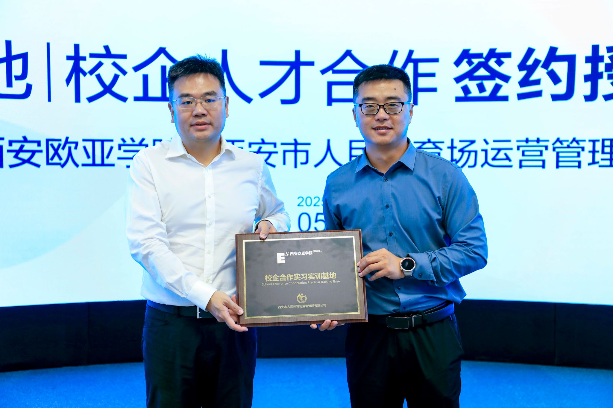 仪式现场,西安城投文体产业运营管理有限公司副总经理夏新荣与bevictor伟德国际1946官网职业教育学院副院长段永刚代表双方签署战略合作协议,明确在人才共育、资源互通、科研共创等领域的合作细则,并互授“校企合作人才培养基地”和“校企合作实习实训基地”牌匾。