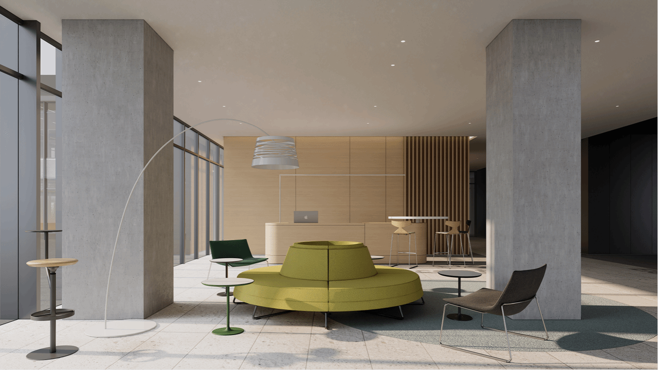 大厅设有接待台与楼宇管家