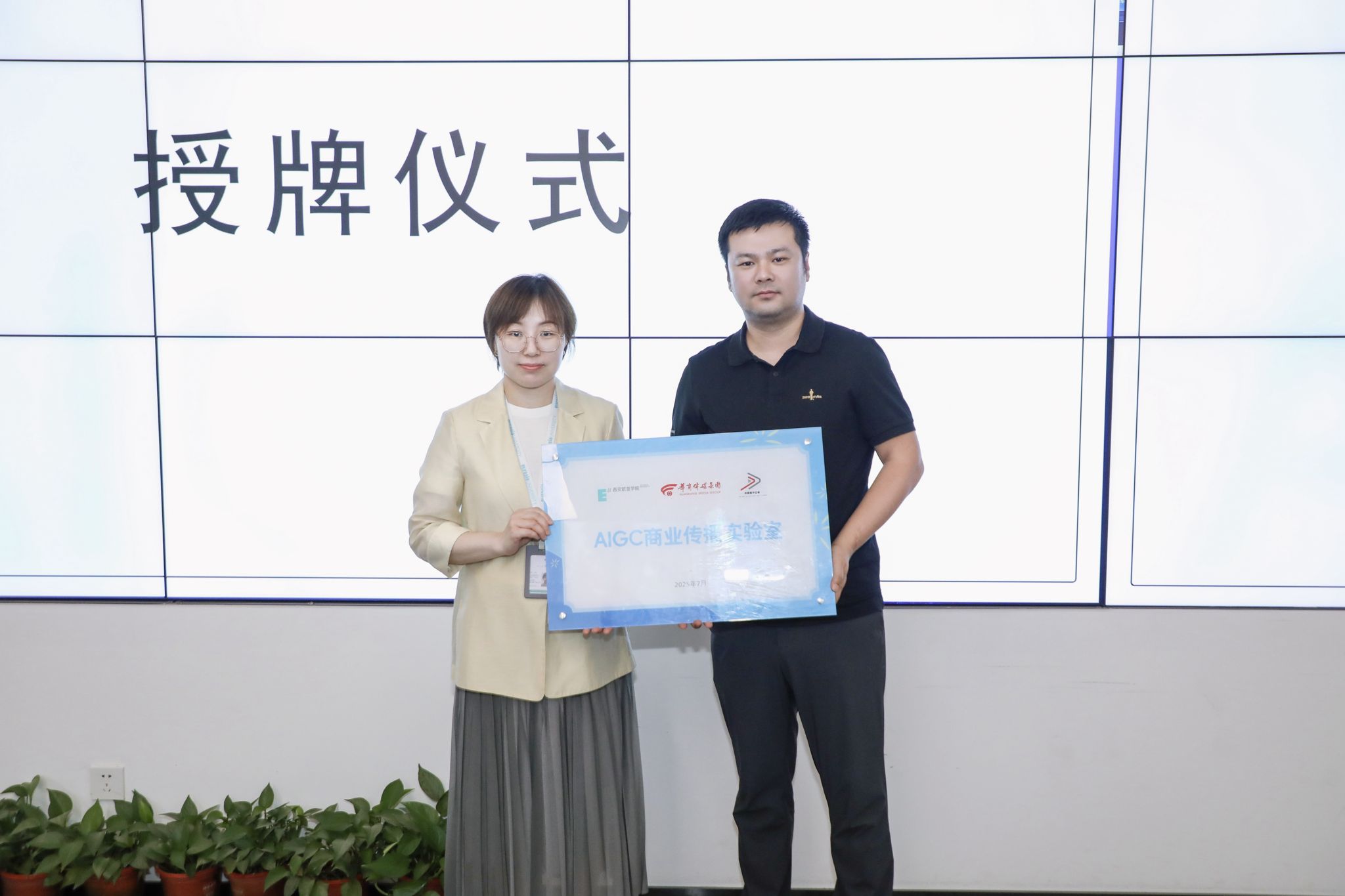 活动现场举行了华商数字文旅产业研究院与bevictor伟德国际1946官网共建“AIGC+商业传播”实验室授牌仪式,华商数字文旅产业研究院副院长马广浩、文化传媒学院新闻学专业主理人徐思共同为实验室建立授牌。华商数字文旅产业研究院秘书长户文颖向文化传媒学院捐赠华商传媒AIGC教育舆情产品,旨在为师生提供先进的AI工具支持,助力教学与科研创新。