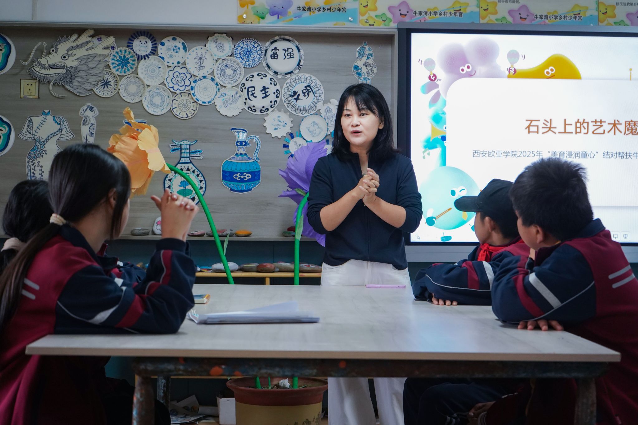 近日,我校结对帮扶清涧县牛家湾小学教育环境提升设计与改造工程圆满完成,以“石头上的艺术魔法”为主题的公益艺术课在清涧县宽州镇牛家湾小学成功举办。