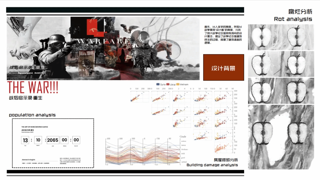 战争,是普世命题中更为沉重的一环。2023年11月,第五季“寻星奖”未来空间设计概念大赛现场,吴雨欣将无法挽回的战争结果具象为鲜活的苦痛命脉,携设计作品《战争疗愈》登台诠释。