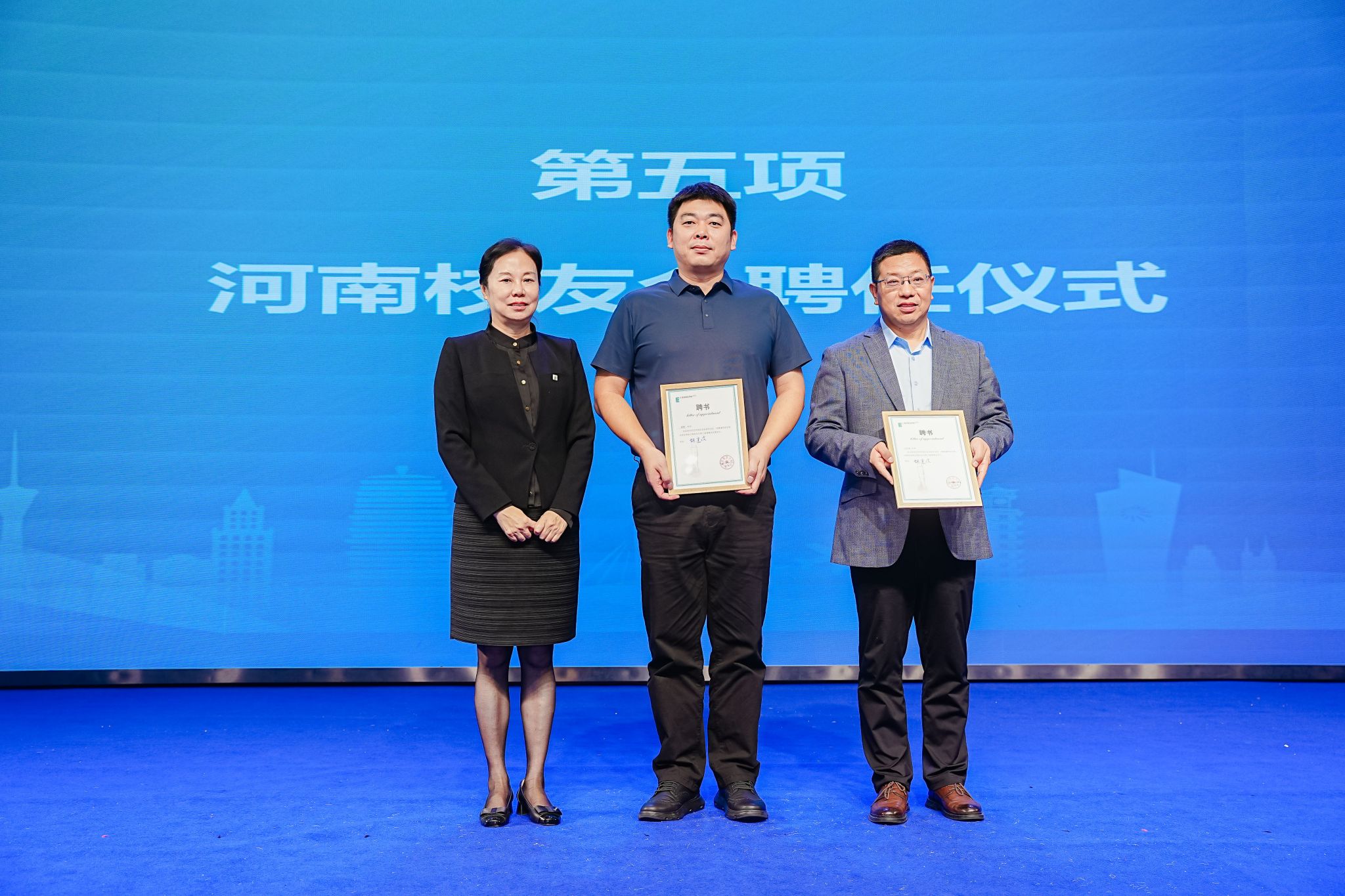 聘任仪式与授旗仪式将现场气氛推向高潮。新一届理事会成员接过聘书与会旗,象征河南校友会正式开启新篇章,肩负起凝聚校友、服务母校的重任。
