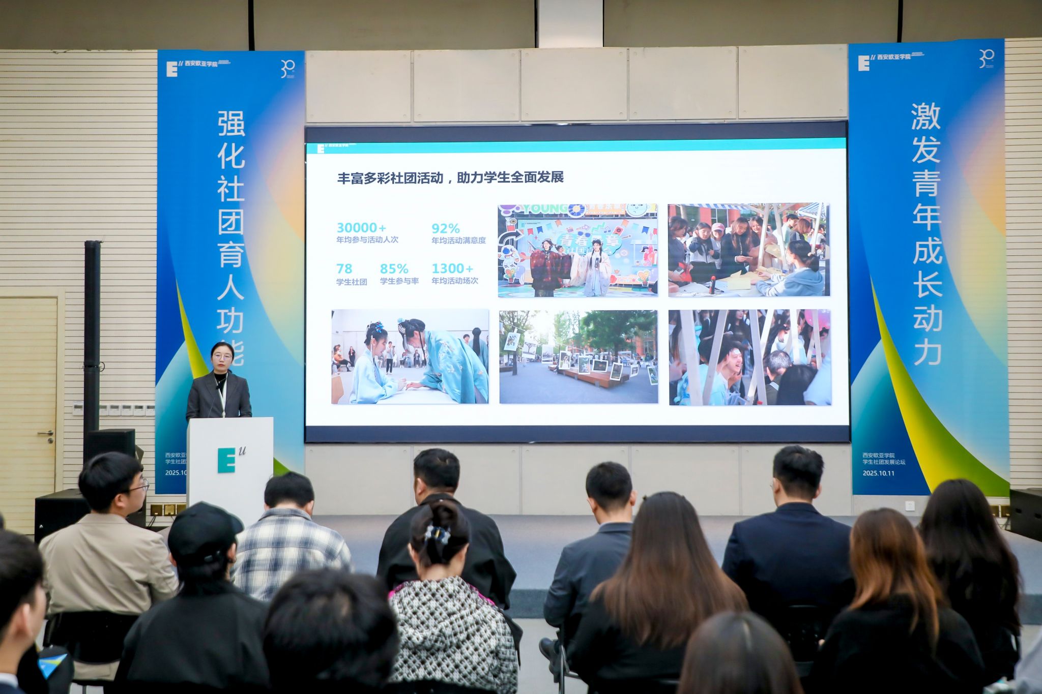 在高校经验交流环节中,来自西安交通大学的张家铭同学以交大社团运营管理体系为例,详细介绍了学校在社团资源配置、组织架构优化、社团干部培养及品牌项目孵化等方面的创新做法。