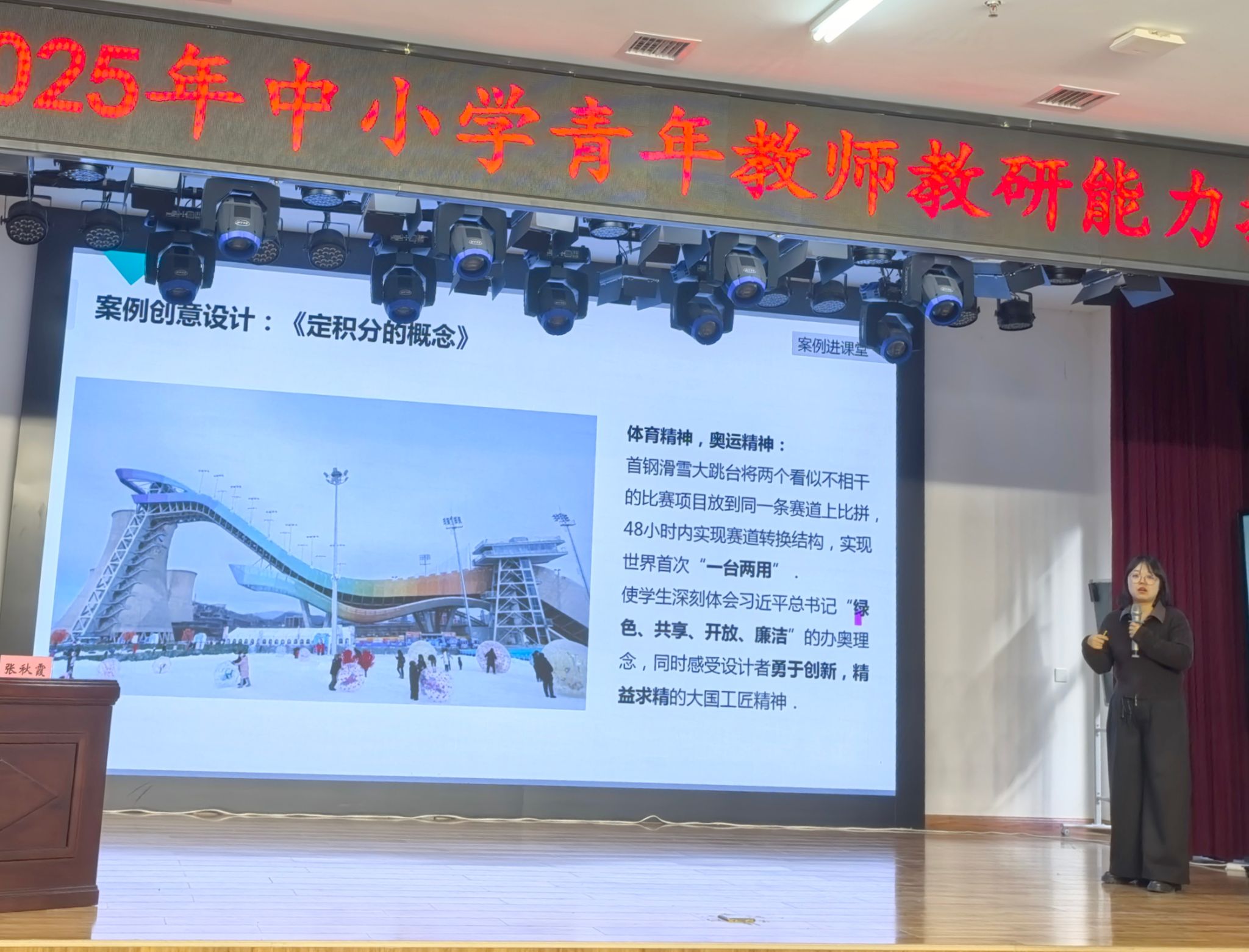 刘睿老师与张秋霞老师带来的《数学课程的跨学科设计与实施》专题,聚焦《高等数学AⅠ》和《经济数学Ⅰ》两门必修课程的创新教学模式。课程从整体设计出发,以培养高素质应用型人才为目标,融合“线上+线下+AI赋能”的混合教学模式,结合分层次、案例驱动、互动式等方法提升教学效果。教师通过首钢滑雪大跳台案例引入定积分教学,使学生在解决真实问题的过程中理解数学原理,同时实现课程思政融入。课程还展示了多元化评价方法及量规使用,科学监控学习效果,并展望未来数学教育发展方向:强化社会责任意识、提升实践能力、推进数字化与个性化教育、完善评价机制,全面助力教师在课堂教学中实现理论与实践的深度融合。