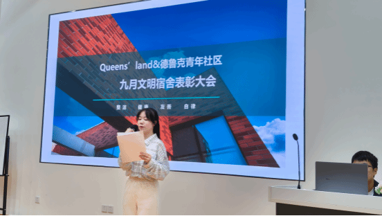 空山新雨后,天气晚来秋。伴随着秋天的第一场雨,9月29日下午2:00在西C001Queens’land和德鲁克青年社区迎来了月度文明宿舍表彰大会暨卫生标准培训会,参加本次大会的成员有辅导员、新生宿舍长和文明宿舍代表,共计200余人,大会由社区学生会生活部部长刘心怡同学主持。