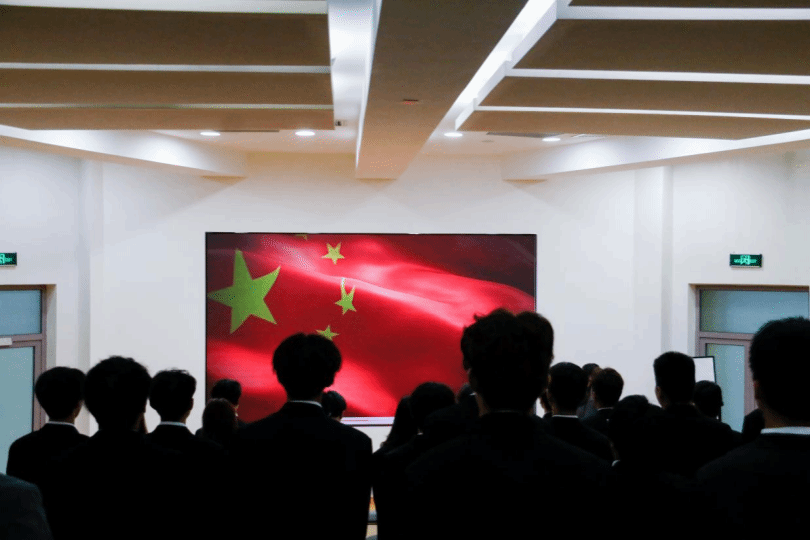 全体起立,奏唱国歌。在五星红旗光芒的照耀下,Ivy青年社区学生会全体大会正式召开。