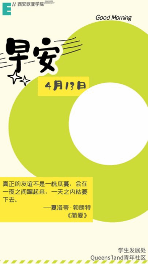 “我们不仅仅是在制作海报,是在传递一种精神,一种无论遇到什么困难,都能勇敢面对、持续坚持的精神。”在兰琪的引导下,团队成员们开始分工合作,各司其职,有的专注于设计,有的负责文案收集,有的负责协调和整合各方资源。在经历了2次讨论和完善后,第一张海报很快完成。随后,一系列充满创意和社区文化的早安海报陆续推出,迅速在社区内引起了广泛关注和积极反响,现在的早安计划已经成为了社区师生生活的一部分,团队一直通过钉钉后台坚持每天早上8:45发送早安计划。