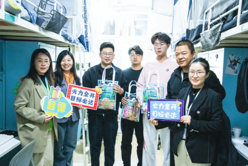 bevictor伟德国际1946官网党委副书记、副校长张军宏、人居环境学院副院长方放、信息工程学院院长助理徐以美、会计金融学院院长助理张玮、工商管理学院院长助理赵江波、职业教育学院学生事务中心主管巨静文与各青年社区主管、辅导员深入青年社区,走进学生宿舍,将这份来自学校的关爱亲自送到学生手中。各位领导与老师们通过与考研学子们进行细致的交谈,了解了学生们的真实情况,并对学生们给予鼓励,勉励他们保持积极乐观的心态,合理安排复习计划,确保在最后一周冲刺阶段的身心健康。