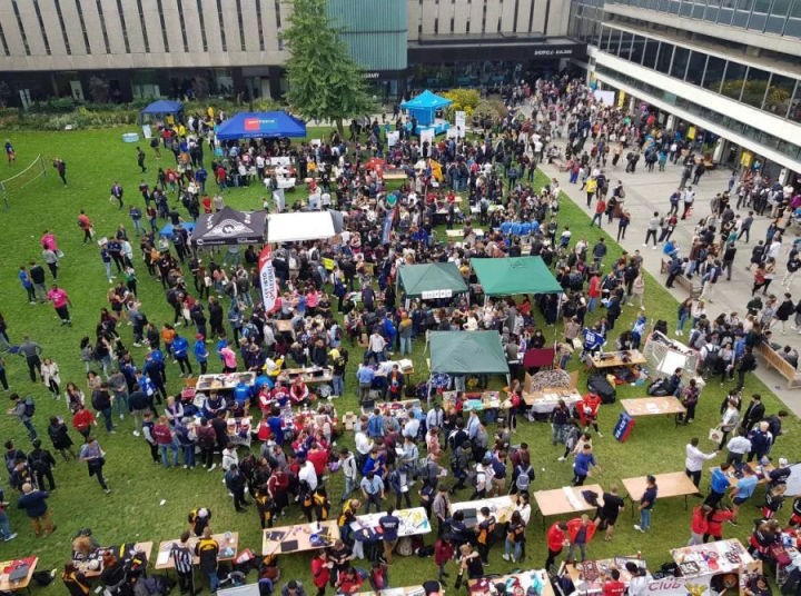 帝国理工学院的迎新日(College's Fresher’s Fair)在中央草坪上举行。学期刚开始时,帝国理工学院将举行社团欢迎会(welcome party),各个社团将设置摊位(booths)和海报(posters),并开展有趣的活动,从而吸引新生们加入。
