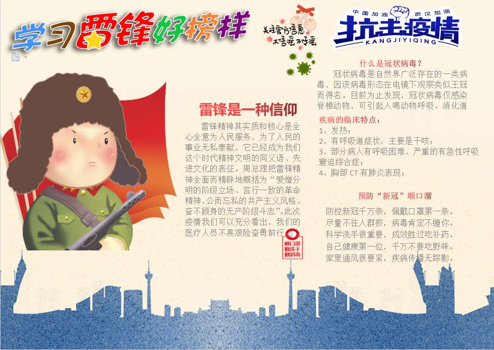 受疫情影响,在这样足不出户的特殊时期,学生党员及入党积极分子们积极响应,通过手绘和线上制作的形式描绘着心中对胜利的信念和对防疫工作的敬意,充分展现了学生党员及入党积极分子学习传承雷锋同志的高尚情怀。